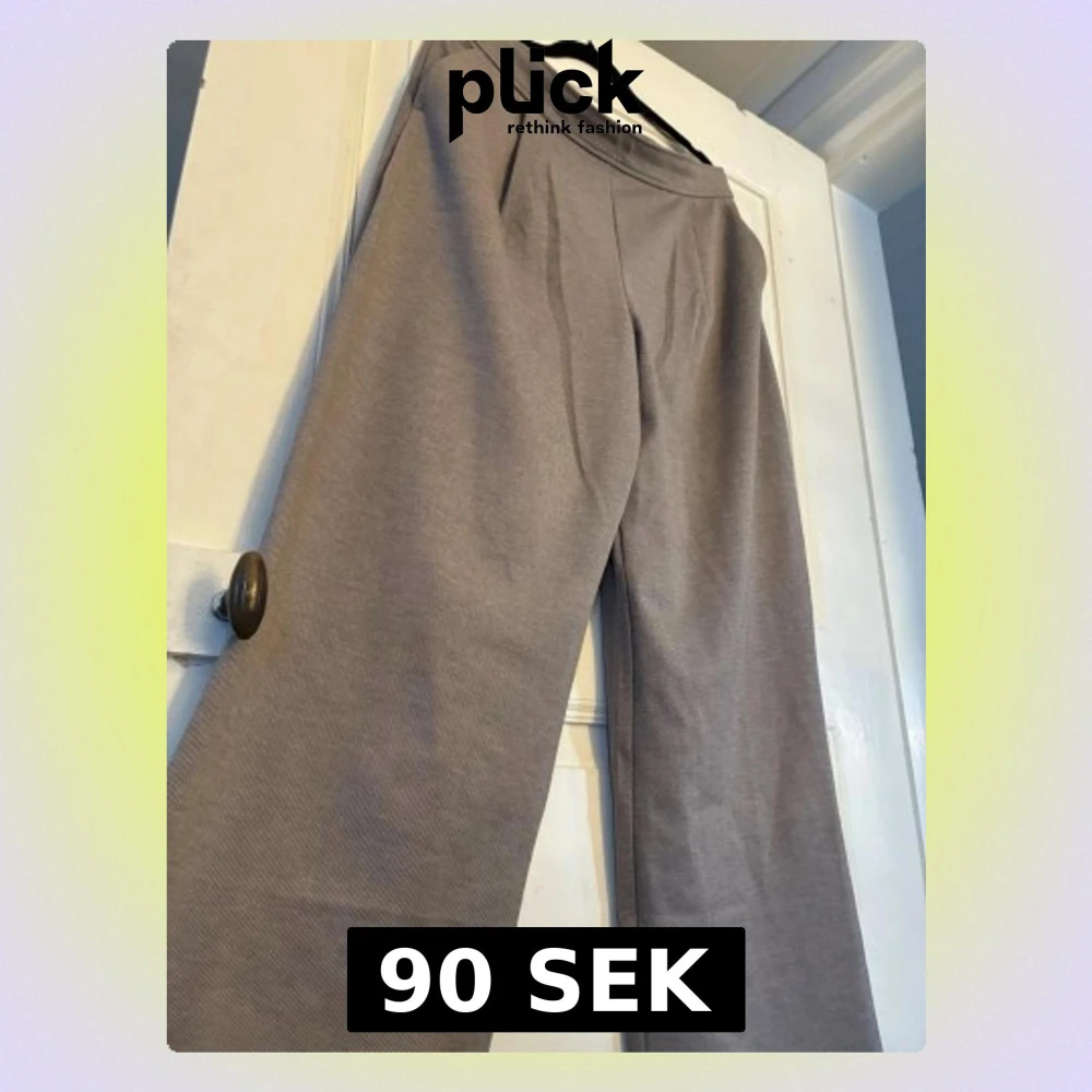 Säljer ett par grå kostymbyxor från H&M i storlek M. Byx bootsen har hög midja, raka ben och en clean look utan fickor ta bort. Materialet är mjukt och stretchigt, perfekt för chill dagar. Passformen är loose och stilen filling wide.