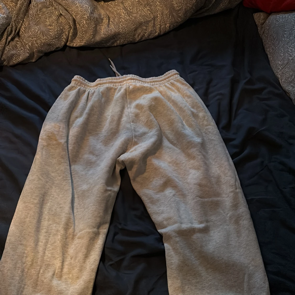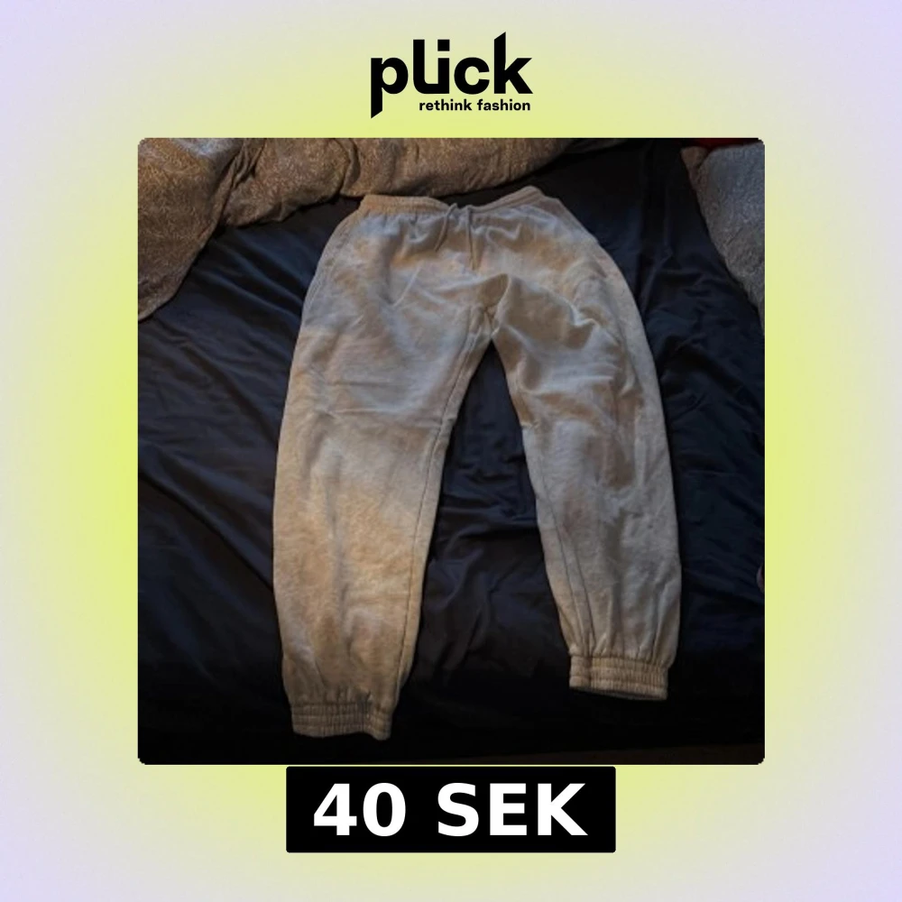 Säljer ett par klassiska grå mjukisbyxor med resår i midjan och vid bensluten. Perfekta för chill dagar eller när du vill vara extra bekväm. Byxorna har en avslappnad passform och är gjorda i mjukt bomullsmaterial.