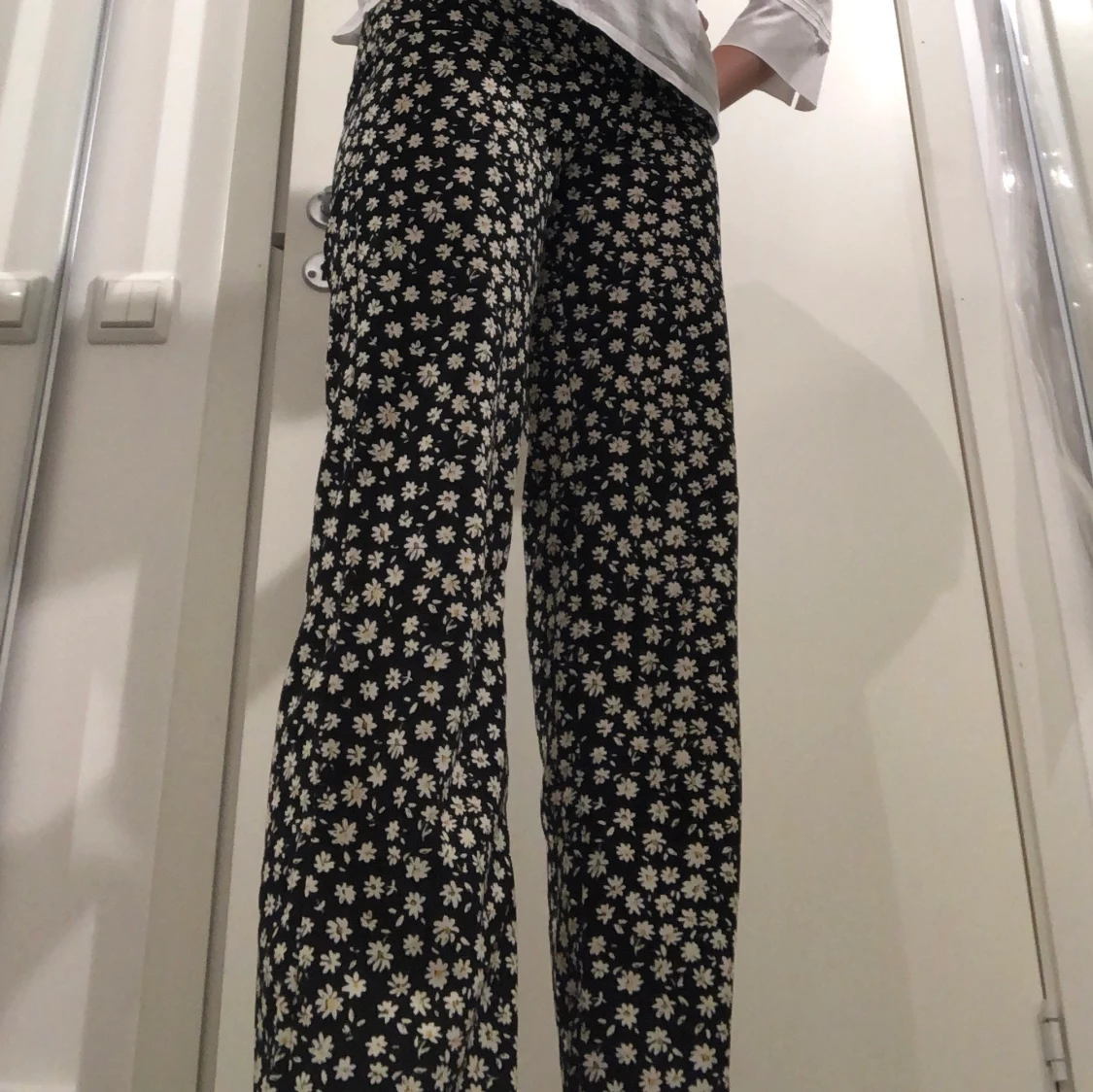 Supersöta, tunna, lite wideleg byxor som passar perfekt till sommaren🌸 Väldigt skönt material och sitter supersnyggt. Använda fåtal gånger, inga defekter så dom är som nya! Storlek 34🌟💗