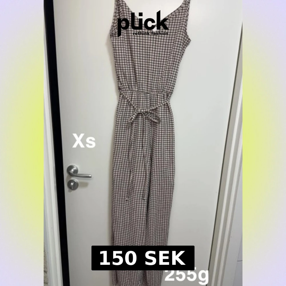 Säljer en snygg rutig byxdress i beige och svart med smala axelband och knytband i midjan. Lätt och luftig modell med raka ben, perfekt för varma dagar. Passar dig som gillar en avslappnad men trendig stil. 🌸 Använd en gång. Storlek Xs