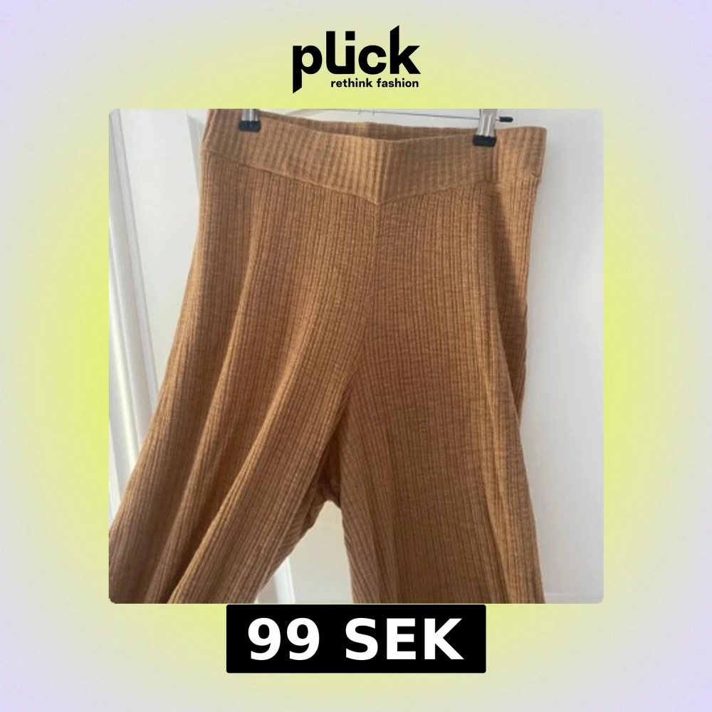 Superbekväma ribbade byxor från H&M i en varm beige färg. Vida ben och hög midja ger en chill och trendig look. Tillverkade i mjuk bomull, perfekta för dig som gillar avslappnad stil med lite extra edge.