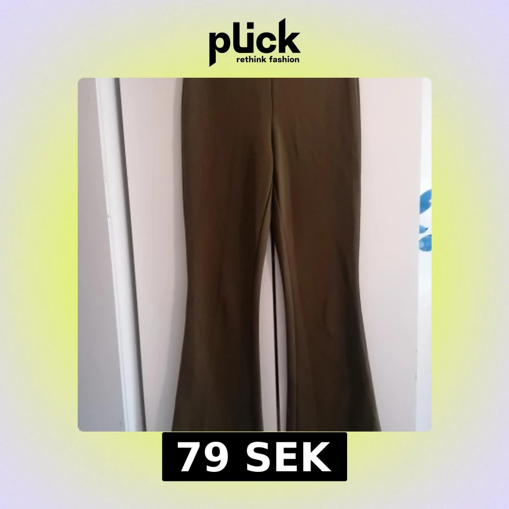 Snygga olivgröna bootcut-byxor från H&M med stretchigt material och mjuk känsla. Byxorna har en klassisk bootcut-modell med utsvängda ben och sitter skönt i midjan. Perfekta för dig som gillar en trendig och avslappnad stil. Har endast använts ett fåtal gånger, sedan suttit i garderoben.