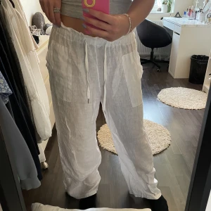 Vita Linnebyxor  - Vita linnebyxor som inte kommer t andvöndning. Andvönd ett par fåtal gånger och har inga fläckar. Fler bilder kan skickas 🩷priset kan diskuteras