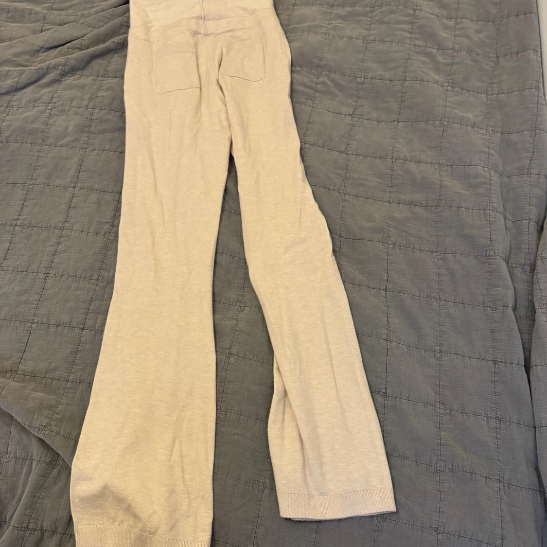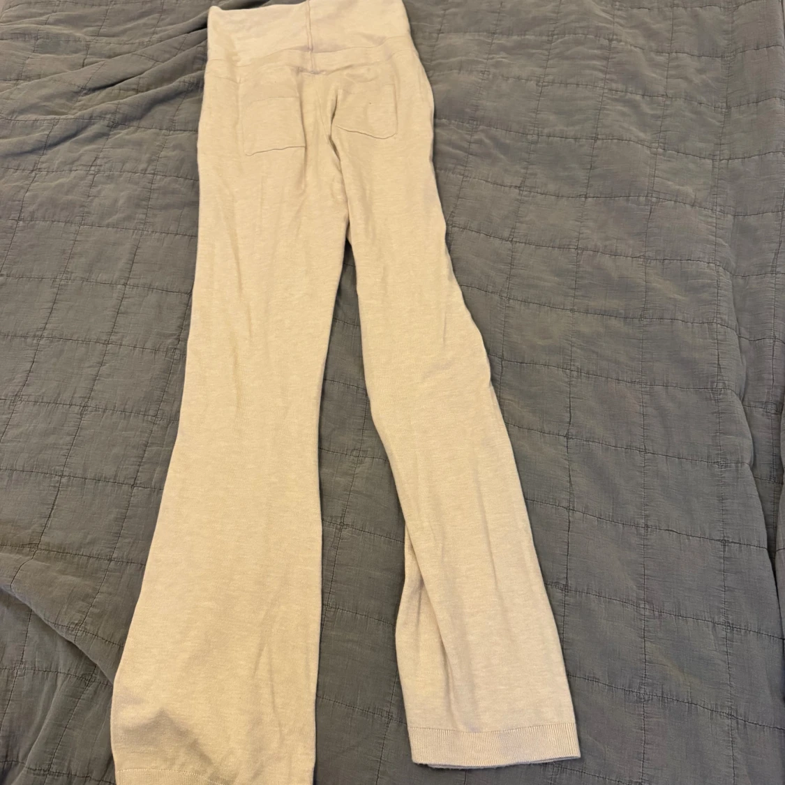 Säljer ett par beiga mjukisbyxor med bootcut-ben. Byxorna har låg midja och är tillverkade i ett mjukt, stretchigt material som känns skönt mot huden. Perfekta för en chill och avslappnad look. Storlek 158/164 men passar som en xs och xxs.❤️
