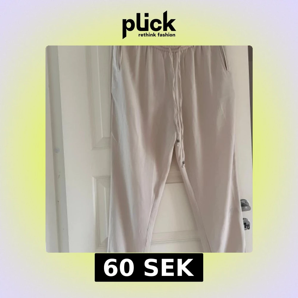 Säljer ett par beiga mjukisbyxor från Indiska i storlek L. Byxorna har resår och snörning i midjan, sidfickor och resår vid bensluten. Sköna och lätta, perfekta för chill dagar. Materialet känns mjukt och luftigt.