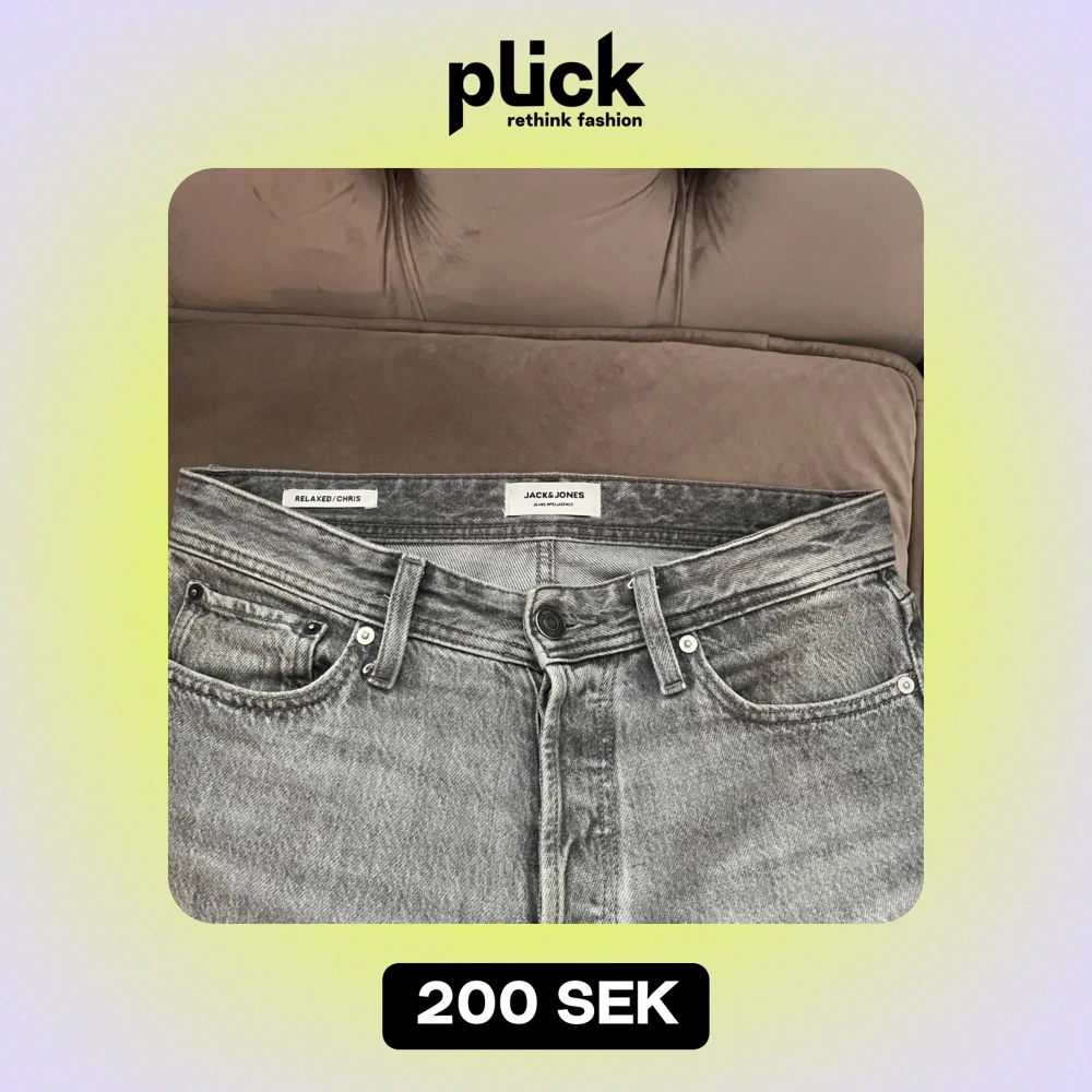 Säljer ett par grå jeans från Jack & Jones i mycket bra skick. De har en relaxed fit och är perfekta för en casual look. Klassisk femficksdesign med knappgylf och bälteshällor. Passar både till vardags och lite mer uppklädda tillfällen. Storleken är 29 32 👍