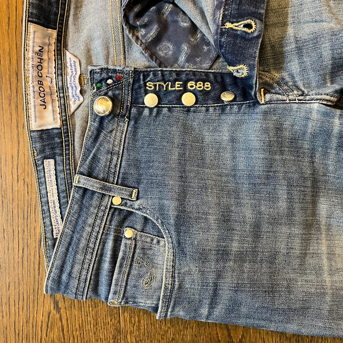 Säljer dessa Jacob Cohën jeans i storlek 32. Jeansen är i bra skick. Modellen på jeansen är 688. Skriv till mig om du har några frågor.