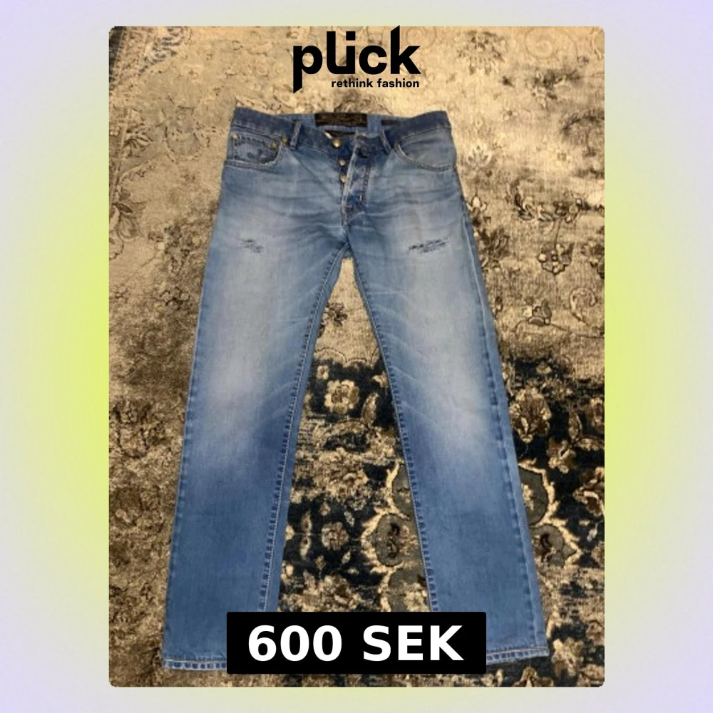 Ljusblå Jacob Cohen jeans med klassisk femficksdesign och raka ben. Jeansen har en knappgylf och slitningar på framsidan. Jeansen är i storlek 32 och priset är pågrund av patchens kvalité. Kan gå ner i pris vid en oerhört snabb affär. För fler frågor eller funderingar är det bara att höra av sig.