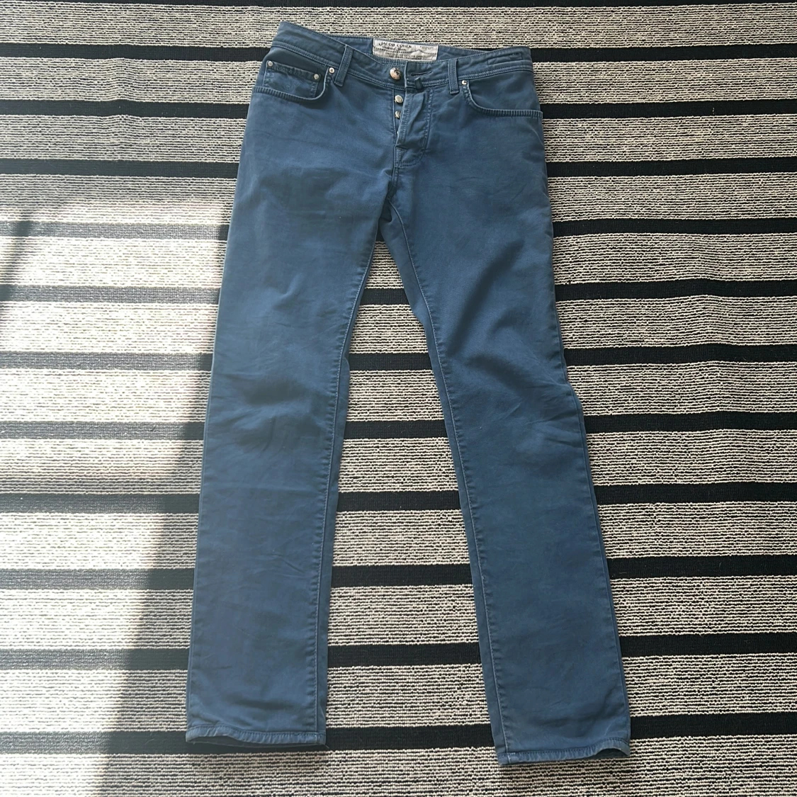 Snygga blå jeans från Jacob Cohën med en klassisk femficksdesign och knappgylf. Byxorna har en rak passform och är tillverkade i ett mjukt material för extra komfort. Perfekta för en stilren look. Storlek 30.