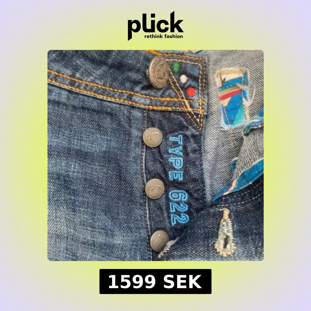 Snygga blå jeans från Jacob Cohen, modell Type 622. Jeansen har klassisk femficksdesign, blå kontrastsömmar och knappgylf med unika detaljer. Materialet är slitstarkt denim och passformen är smal med raka ben. Perfekt för dig som gillar stilrena och coola jeans. Skriv om du har några frågor.billigare vid snabb och smidig affär