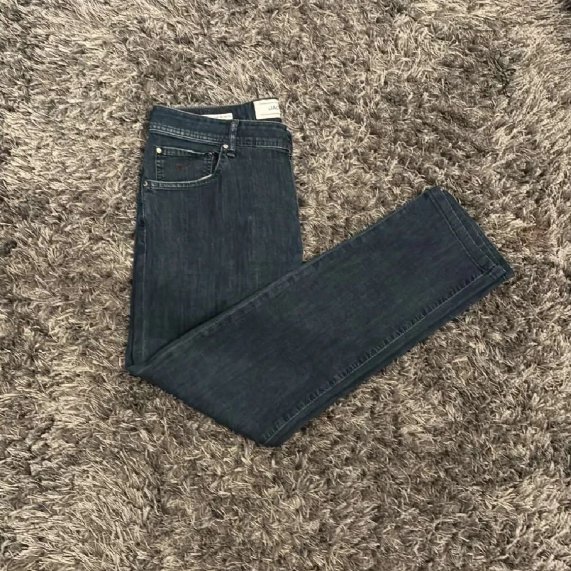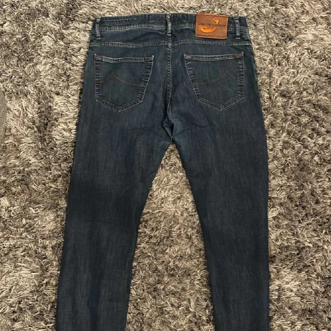 Snygga mörkblå jeans från Jacob Cohen med klassisk femficksdesign och läderpatch bak i midjan. Jeansen har raka ben och diskreta kontrastsömmar. Perfekta för dig som gillar stilrena och tidlösa jeans med premiumkänsla. Steal för er man kan lätt köpa dem för mer än vad jag säljer dem för.Pris går att diskutera 30- 32/32 nypris 4000.Perfekt för dig som vill Resella eller bara ha ett par feta jeans.tveka inte skicka in prisförslag