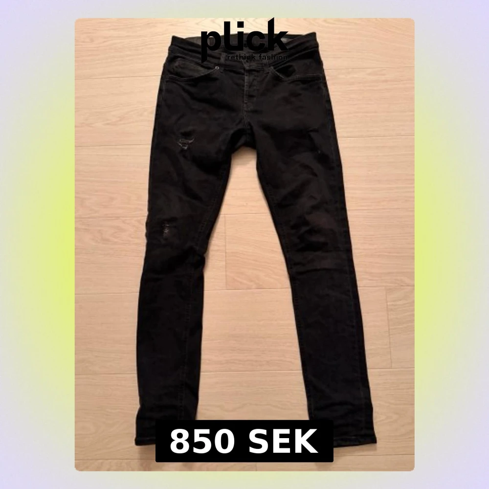 Svarta jeans från dondup med modelen George i skinny fit med klassisk femficksdesign. Byxorna har slitna detaljer på låret och knät för en cool look. Materialet är jeans och passformen är tight. Perfekt för dig som gillar en smal siluett och svart stil.