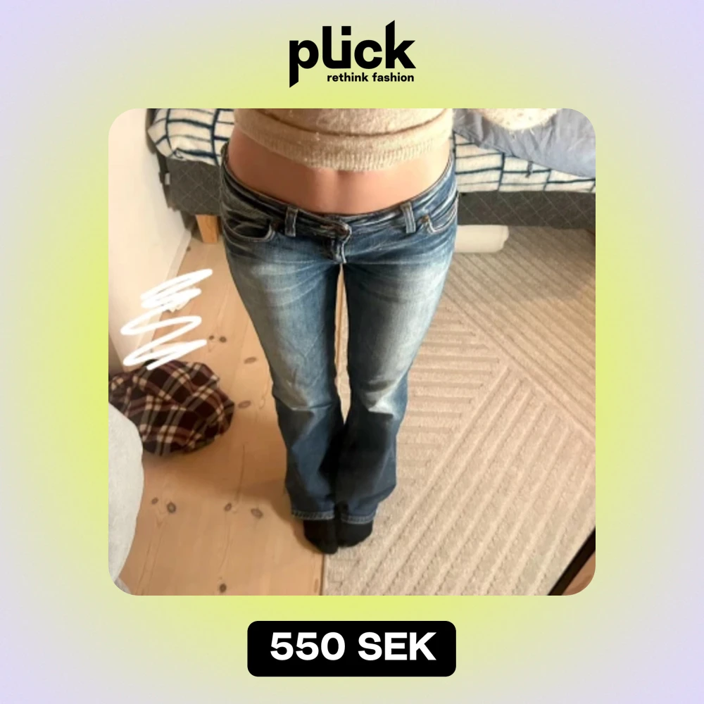 Jätte fina blåa lågmidjade jeans ifrån only. Färgen syns bäst på den tredje bilden. Dom är i storlek 34 men passar även på storlek 36. Min kompis på bilden är 165cm lång men passar även mig som är 170😊