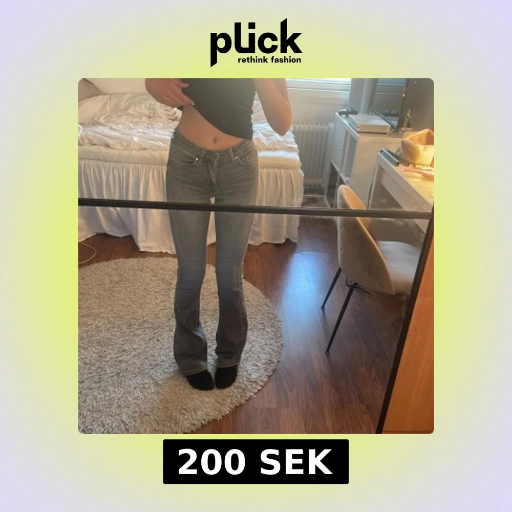 Snygga långa grå bootcut jeans från ONLY i storlek XS och längden 34. Jeansen har hög midja och klassisk femficksdesign. Tillverkade i mjukt jeanstyg med lite stretch för skön passform. Tyvärr har jeansen blivit lite slitna längst ner på båda sidorna även fast de bara använts få tal gånger på grund av att de är för långa för mig.🩶