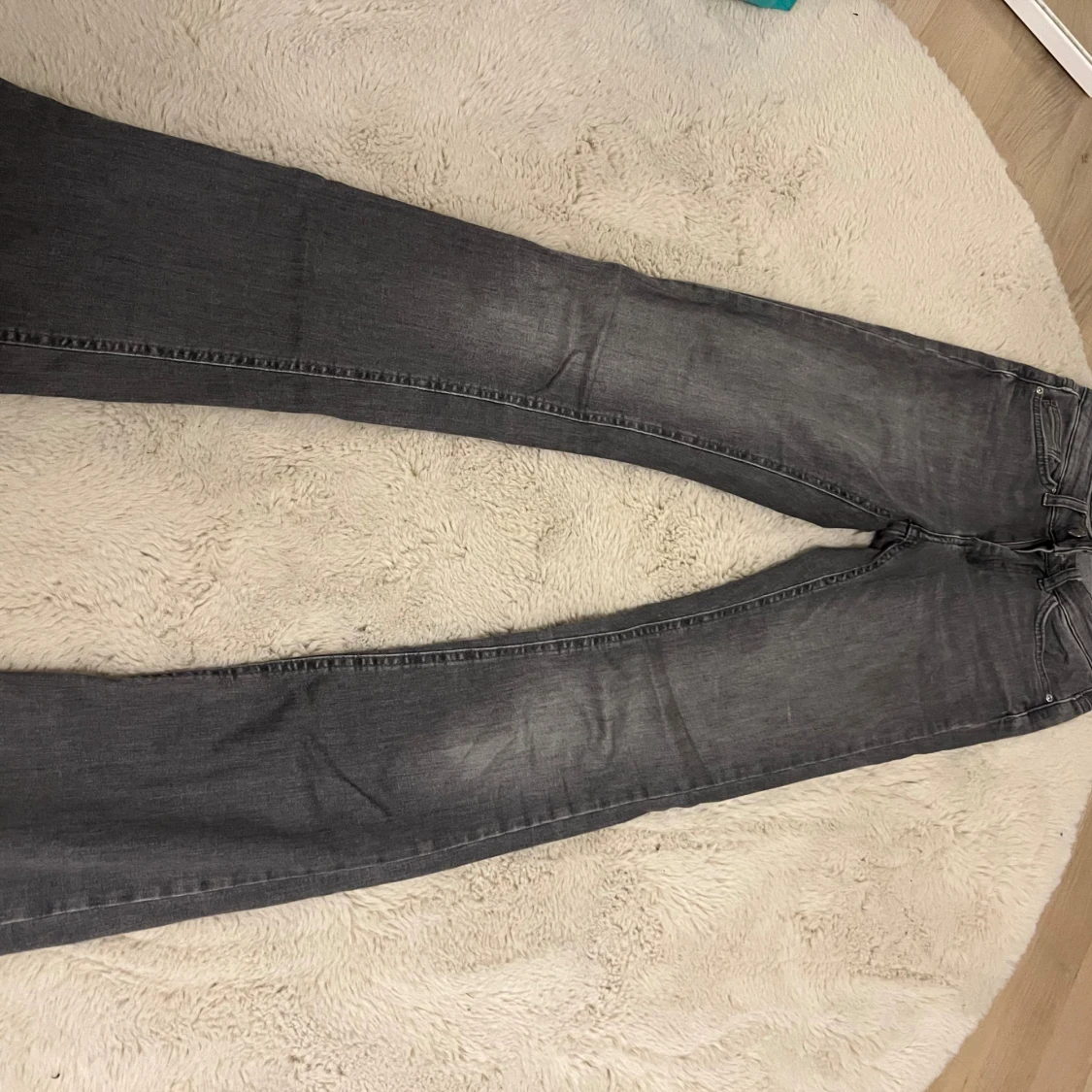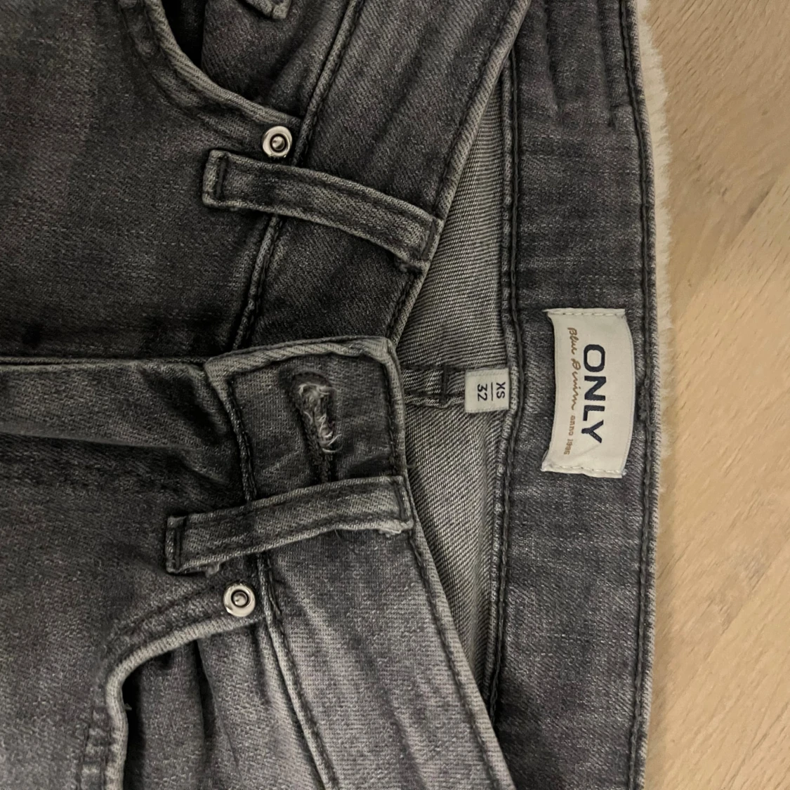 Jeansen är midwaist och stretchiga, i storlek xs och längd 32 super snygg färg 🩶