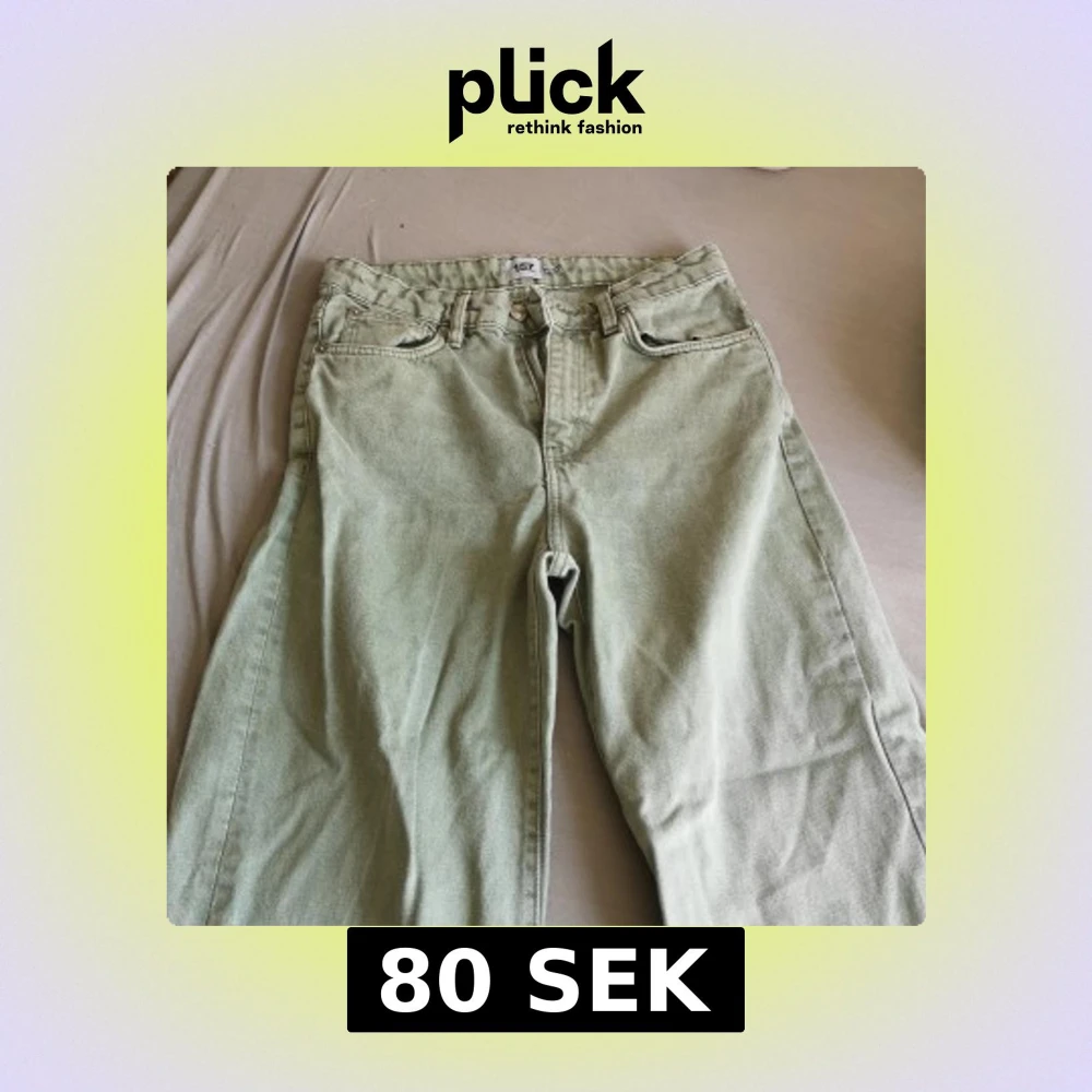 Gröna jeans som köptes här på plick men aldrig kom till användning så skicket är lite osäkert.