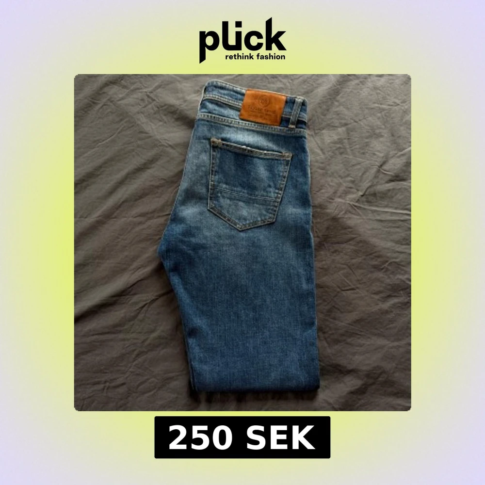 Snygga blå jeans från Taylor Tweed, tillverkade i Italien. De har en klassisk femficksdesign. Perfekta för en stilren look. Nypris runt 2500.