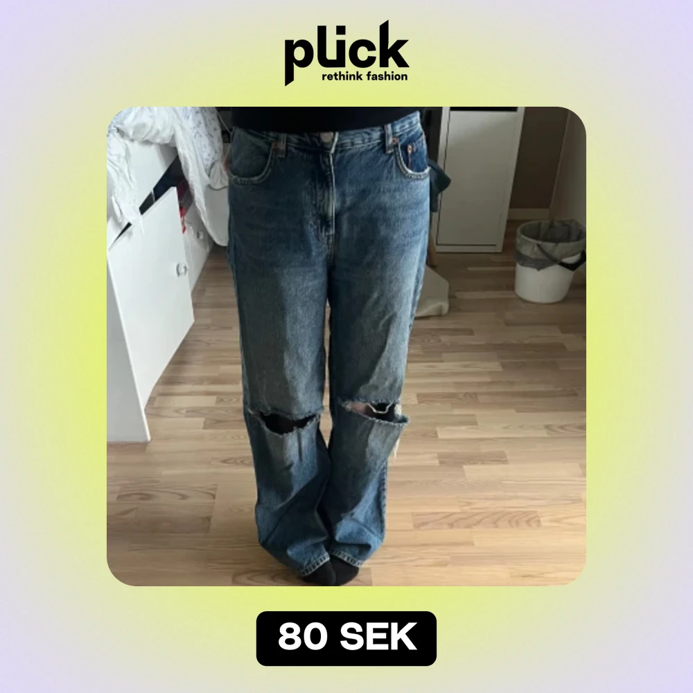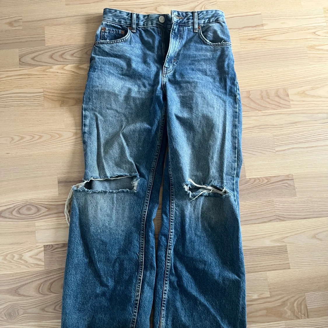 Jeans från pull and bear!! Wide leg, high waist, med hål på knäna. Säljer då jag inte använder dem längre 💙 strl 36
