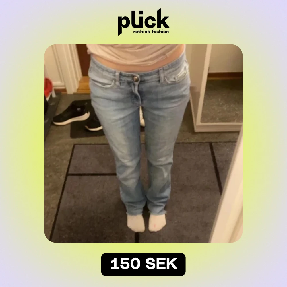 ljusblåa jeans, har används en gång. säljs då dom är lite för stora och inte kommer till användning. jag har klippt dom lite där nere för att dom va för långa, köpta för 350 säljs för 150, priset kan diskuterat. storlek 40❤️