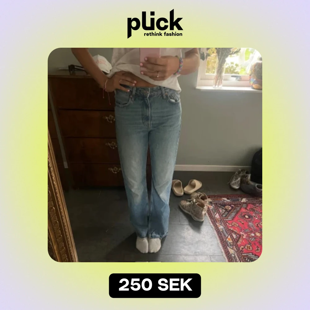 Säljer mina ljusblåa jeans från pull&bear. Det är storlek 36 och har slits längst ner på jeansen. Midjan är medelhög. Bra skick.💞