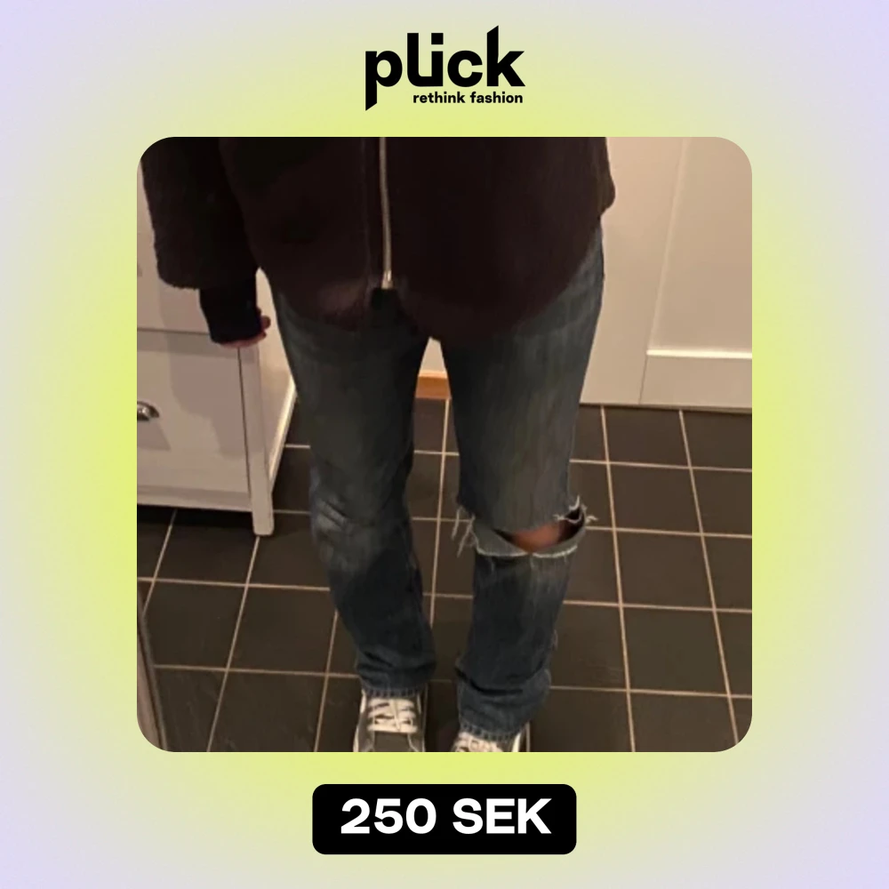 Jeansen är ifrån Crocker med storleken w28 och L32! Har klippt hålet själv och jeansen är vintage. Gillar dessa så mycket!!