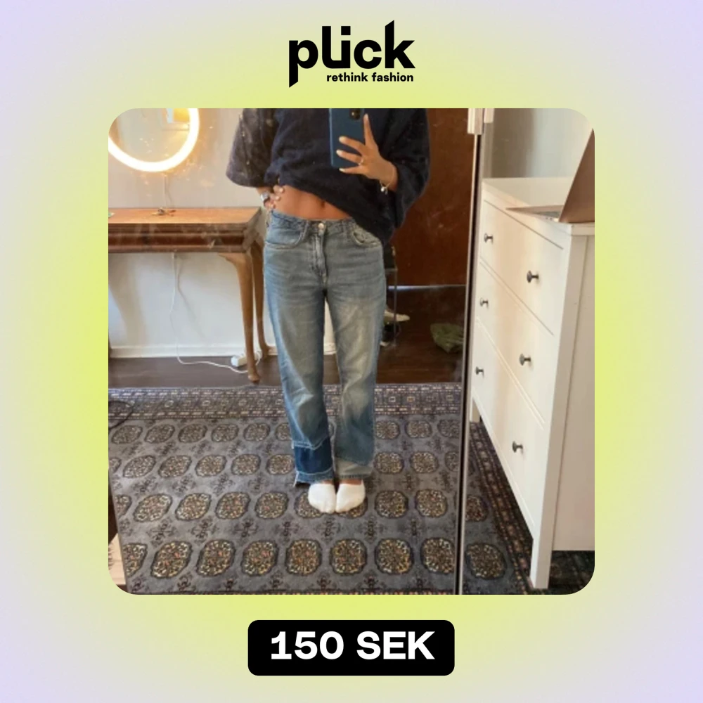 Säljer dessa jeans med coola detaljer nertil. Dom passar perfekt i min längd och jag är 162. Lågmidjade enligt mig, lite osäker om dom är från zara men tror det❤️