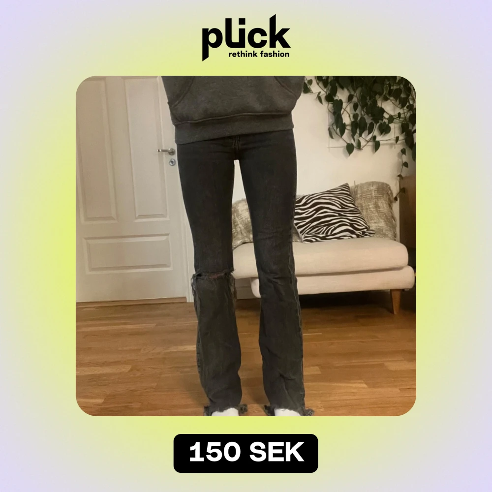 Jeans från gina. Bootcut och low/midwaist. Bra skicks och slitningarna längst ner på byxan är en del av modellen. Bra i längden på mig som är ca 172 med långa ben men passar även kortare. Nypris 500. Använd gärna köp nu💕