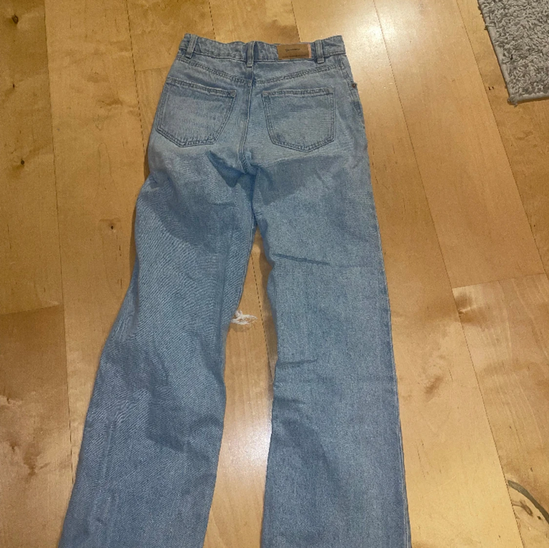 Jeans med hål på knäna. Fint skick o använda få gånger. Gillar verkligen men tyvärr alldeles för små i midjan för mig