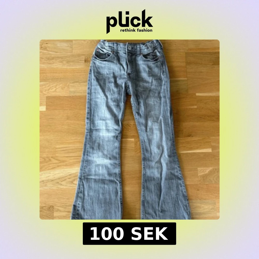 Snygga grå jeans med bootcut-modell och broderade bakfickor med lock och knapp. Jeansen har klassisk femficksdesign och är tillverkade i mjukt denimtyg. Perfekta för dig som gillar en retro vibe och vill ha ett par jeans som sticker ut lite extra.