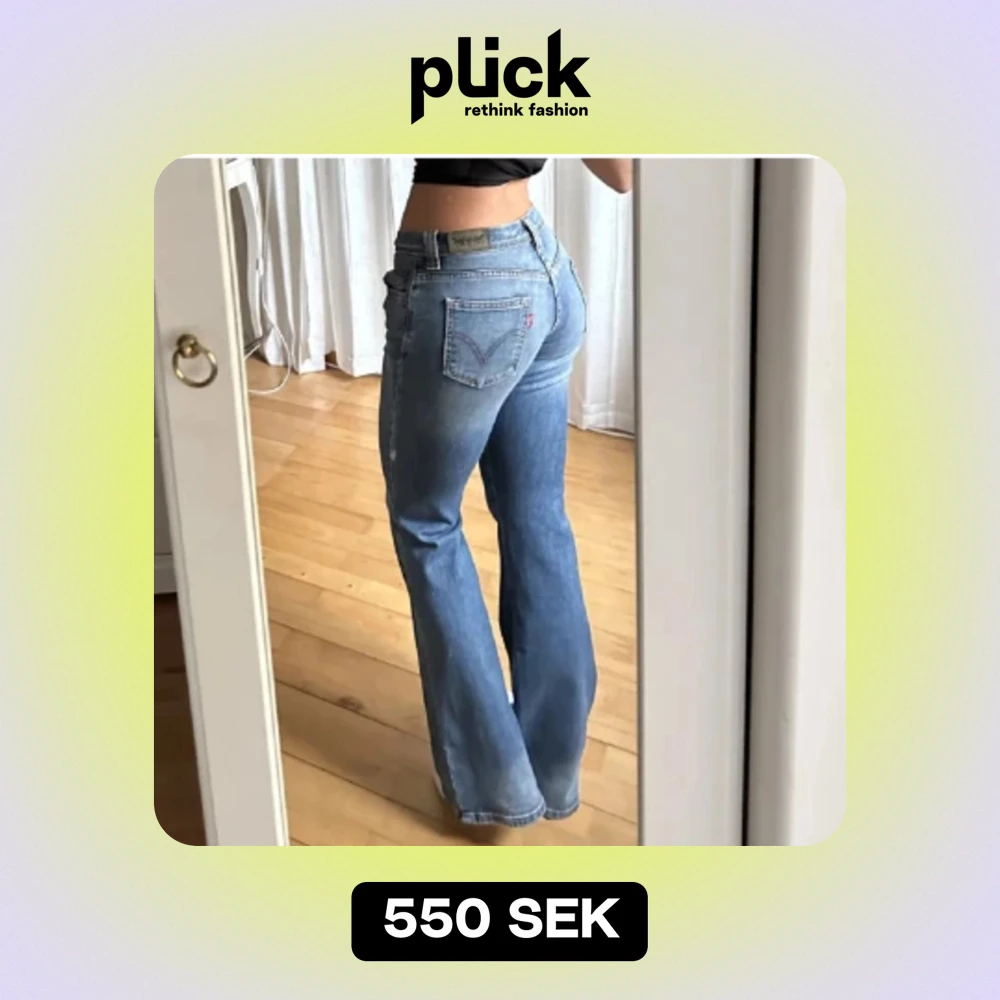 Säljer dessa vintage lågmidjade bootcut Levis jeans som är köpta här på plick (därav lånade bilder, skriv för fler) de är super snygga men har ej kommit till användning. Midja 76 innerben 81, hon på bilden är 165❤️