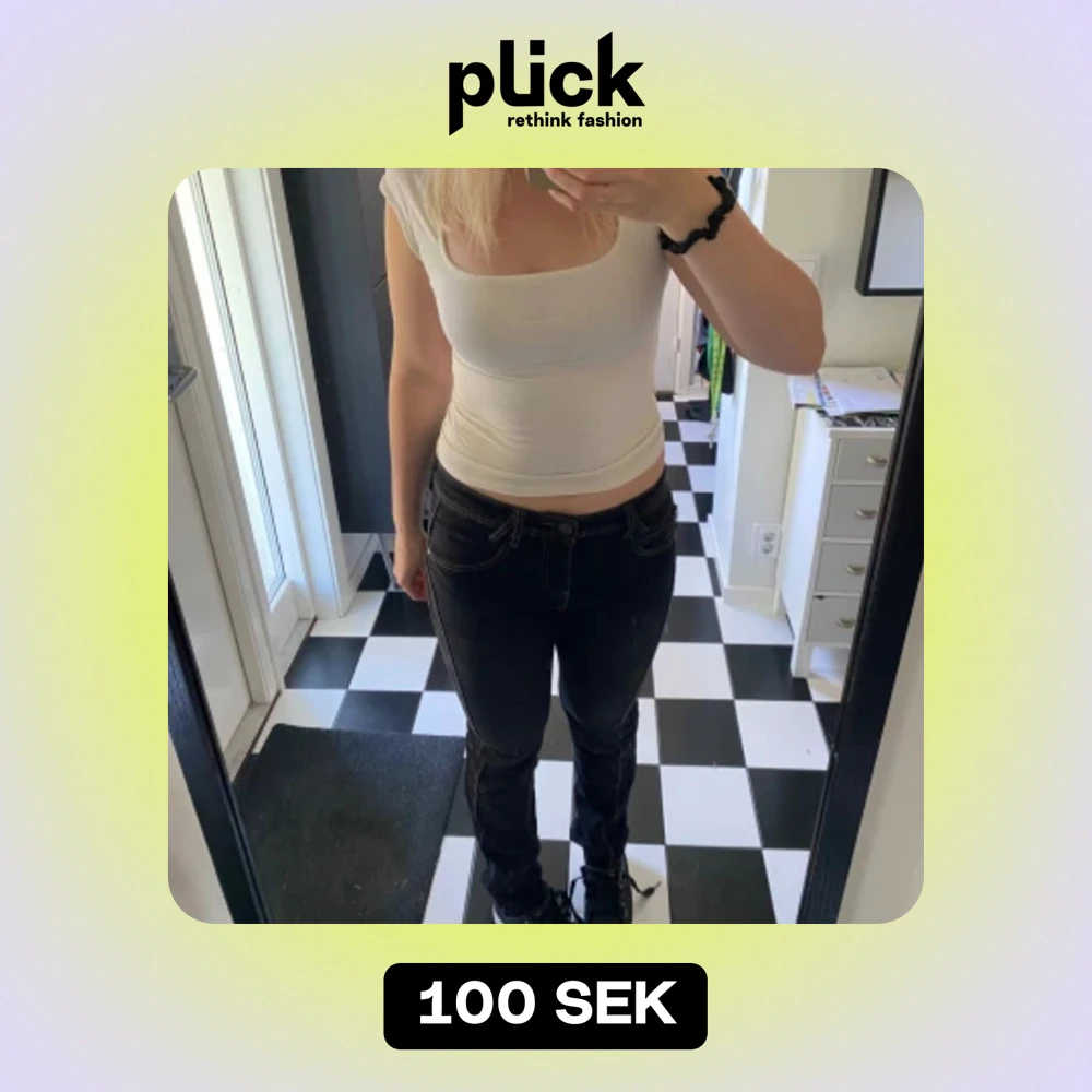 Säljer dessa snygga jeans, köpta second hand så vet inte märket. De är väldigt mörkblå i färgen, nästan åt svarta hållet med bruna sömmar💞