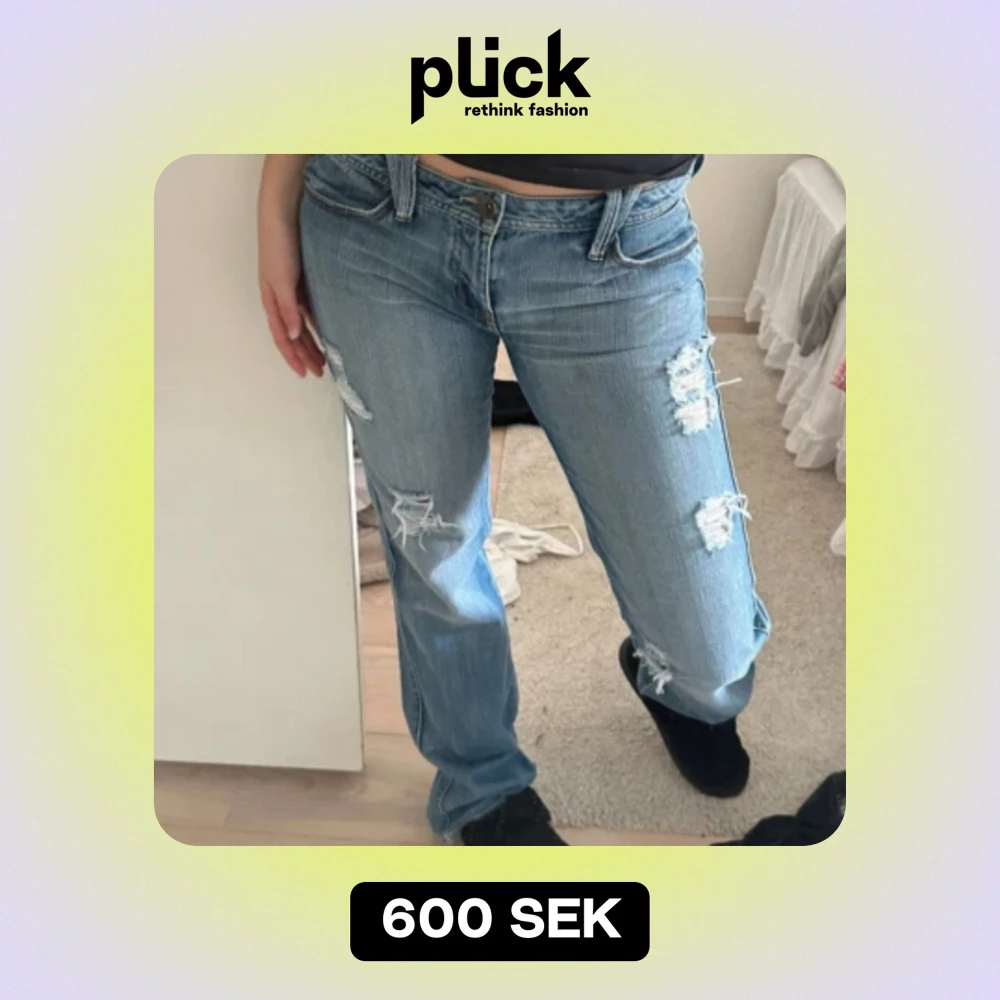 Jeans med hål i bra skick, säljer vidare då de inte passade💞 första bilden är lånad ifrån hon jag köpte de utav. De är i storlek 42 men sitter mindre än det😁
