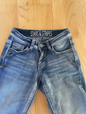 Lågmidjade jeans som liknar miss me från stars and stripes, 32 cm i mudjan tvärs över och 79 innerbenslängd, använd gärna köp nu eller föreslå lögre priser :) kontakta för fler bilder eller frågor