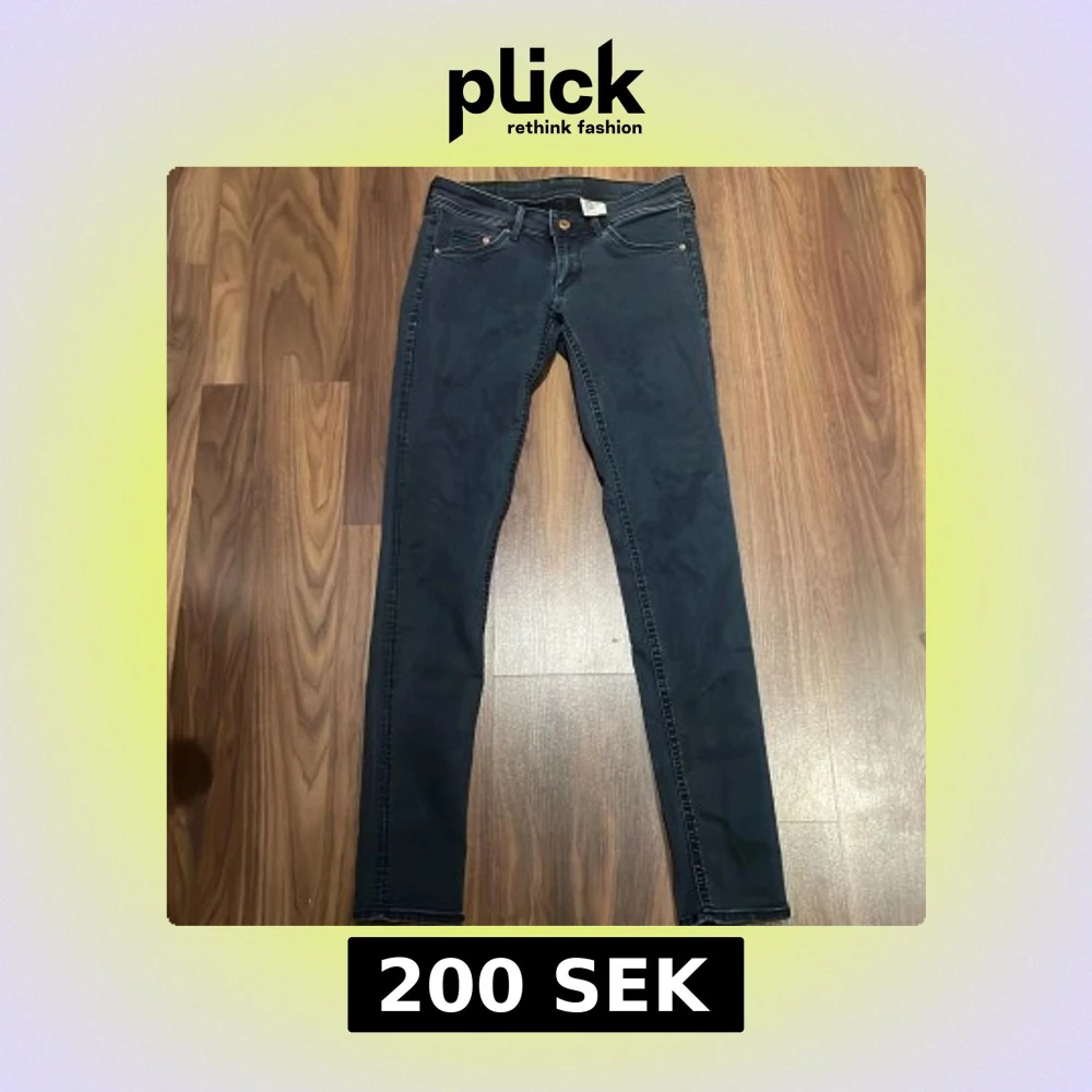 mörkblå skinny jeans från H&M i storlek 28/32 med låg midja och stretchiga. Jeansen har knapp och dragkedja fram. Säljer dessa då dom inte satt bra på mig.