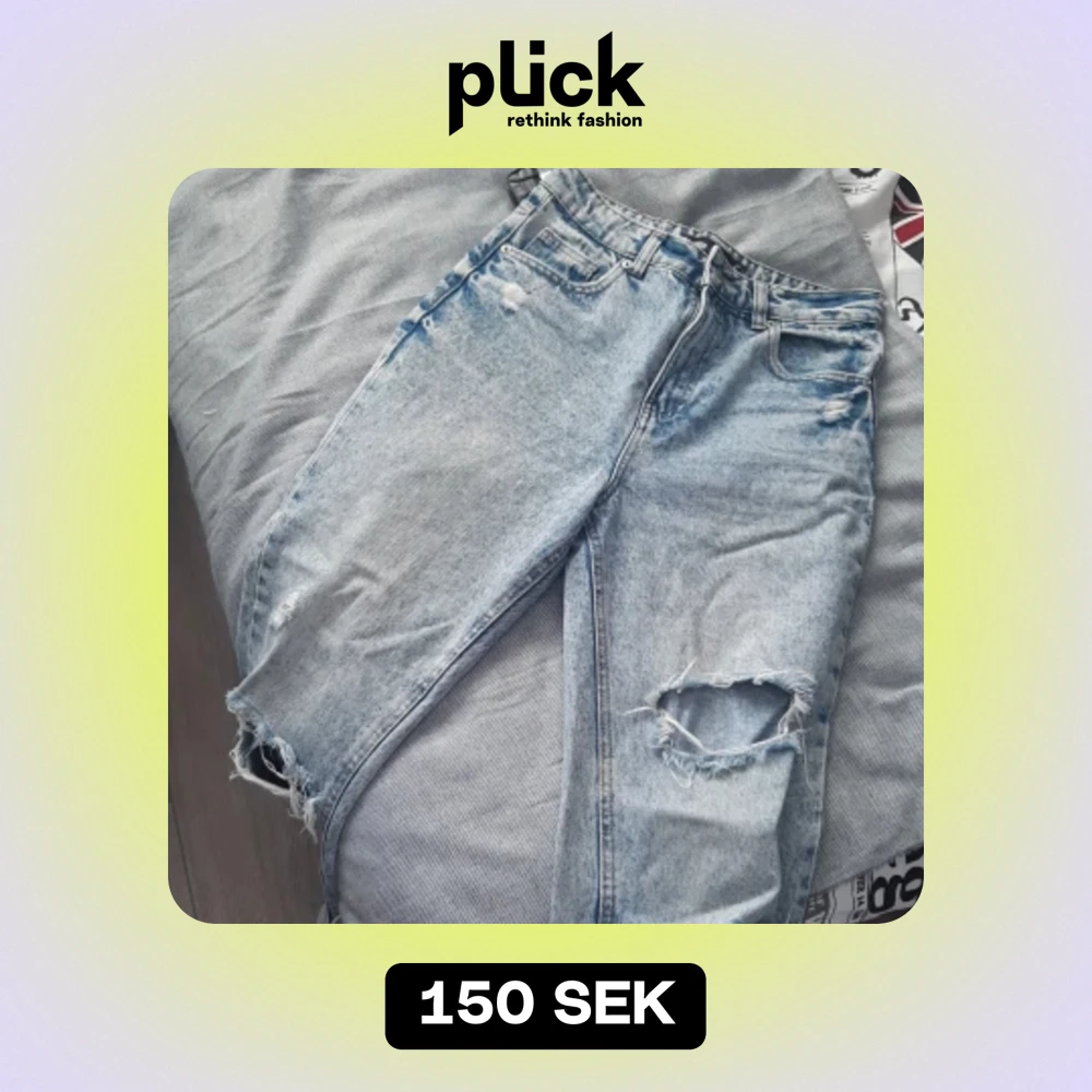 Ett par blå jeans från FB Sister i storlek S, köpta på newyorker. Byxorna har en hög midja och har slitningar på benen. Säljs då de inte kommer till användning längre, använd ett fåtal gånger. Skicka vid frågor. 💕