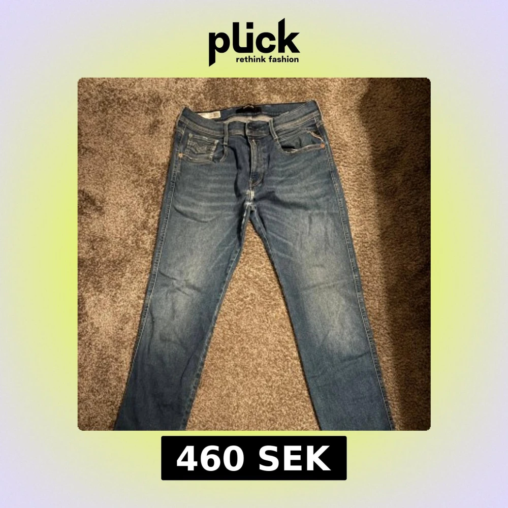 Snygga blå Replay Anbass jeans i slim fit och ljusa slitningar. Helt oanvända!