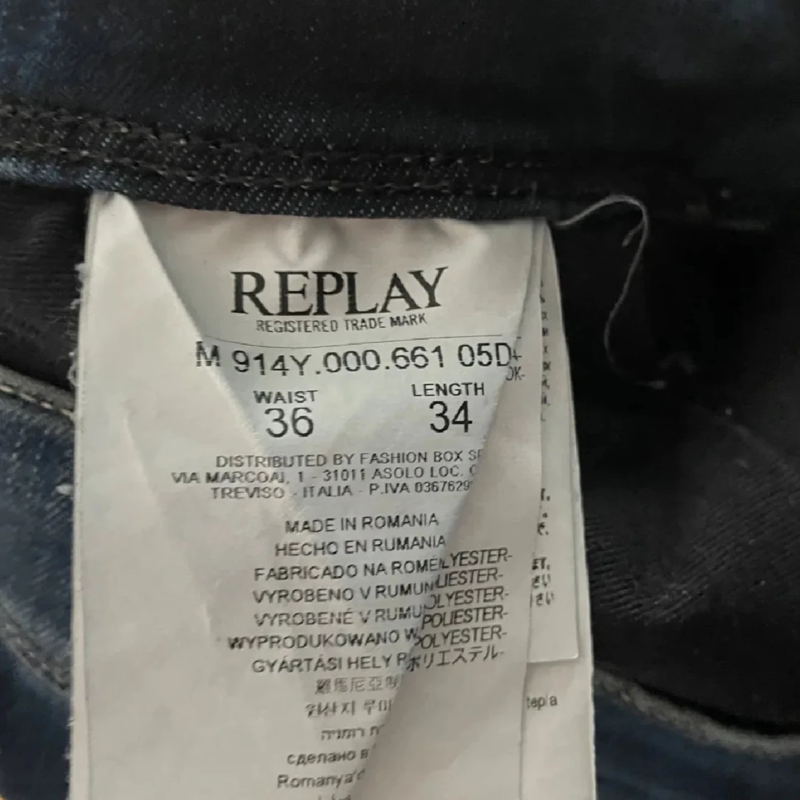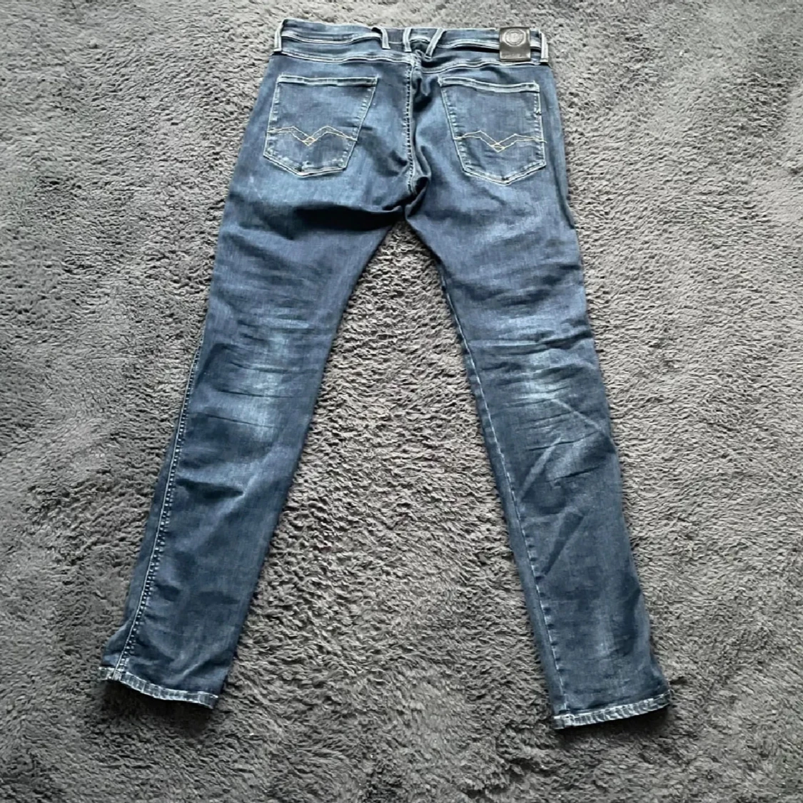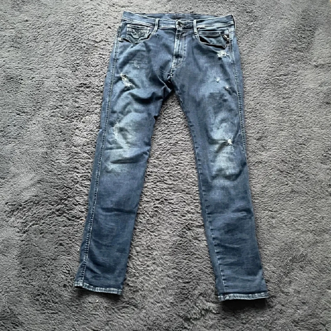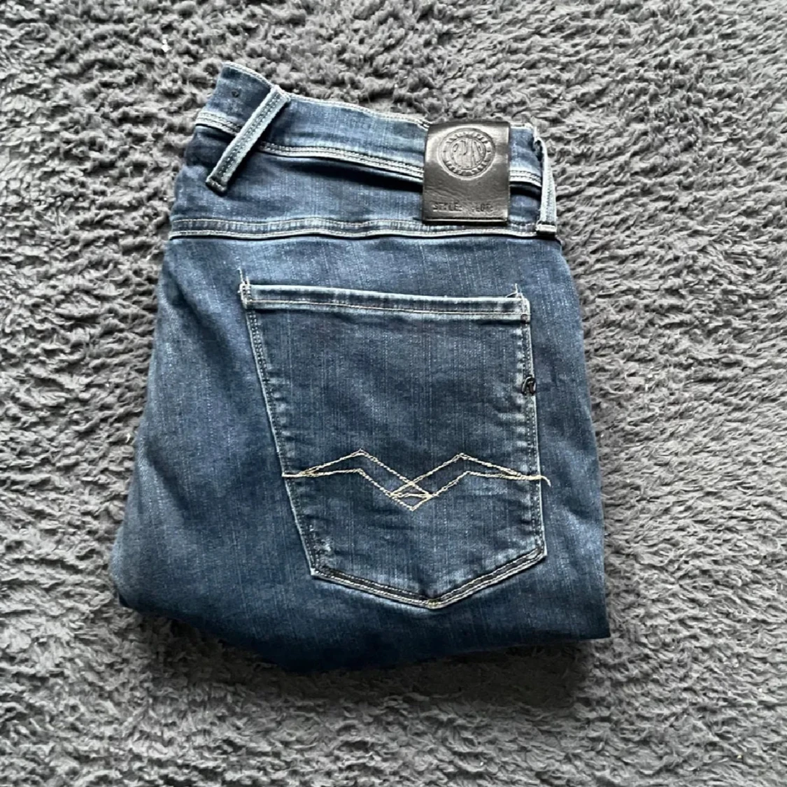 Snygga blå jeans från Replay med klassisk femficksdesign och coola slitningar framtill. Jeansen har raka ben och tydliga kontrastsömmar på bakfickorna. Perfekta för dig som gillar en avslappnad men trendig look.