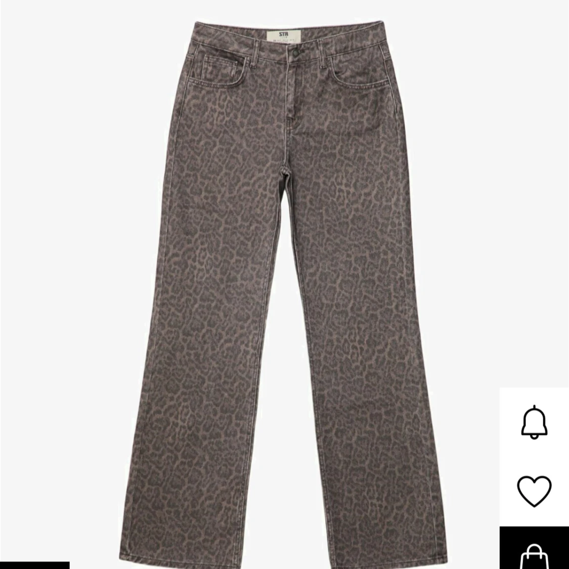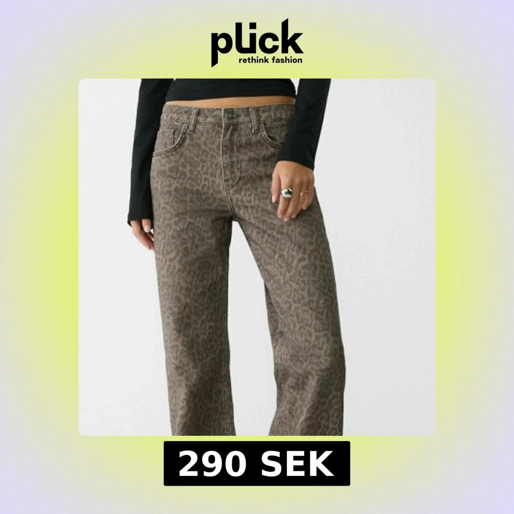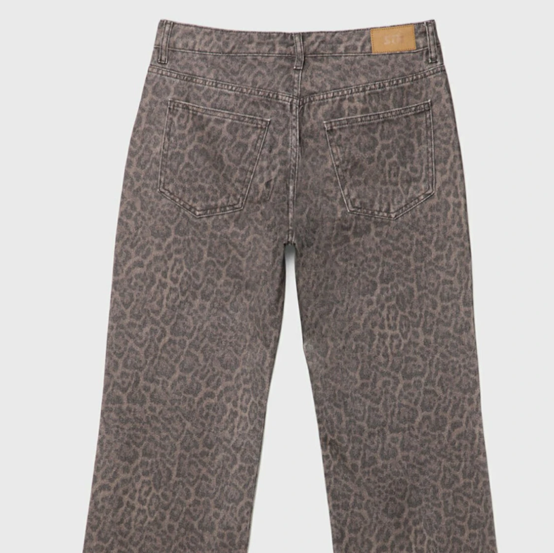 Snygga jeans med leopardmönster i bruna och grå toner från STR. Modellen har raka, vida ben och klassisk femficksdesign. Jeansen är tillverkade i ett robust bomullstyg och har normal midja. Perfekta för dig som vill sticka ut med en cool look. Oanvänd med prislapp kvar, beställda från Zalando i stl 36