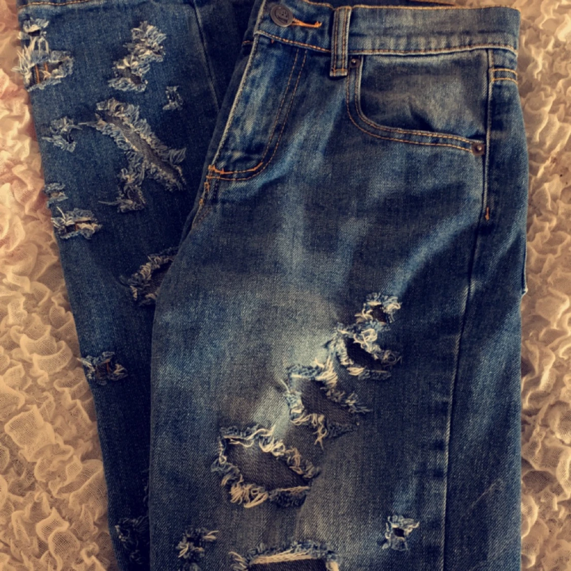 Nya jeans från CheapMonday, lappen är tyvärr inte kvar... tog bort när jag provade de. Tuffa slitningar i. Nypriset ligger på 3-400kr. Säljer de för 130kr. Skickas mot porto, hämtas i Kristianstad eller Karlshamn :)