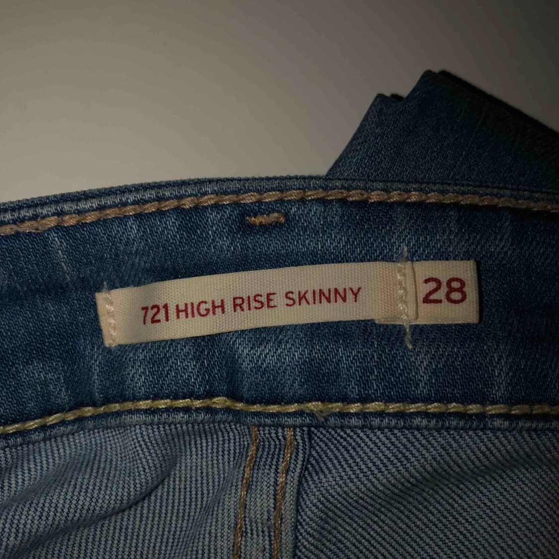 Ett par 721 ”High Rise Skinny” ljusblå från Levi’s, använda ett antal gånger men endast lite slitna mellan benen, köparen står för frakt💖💖