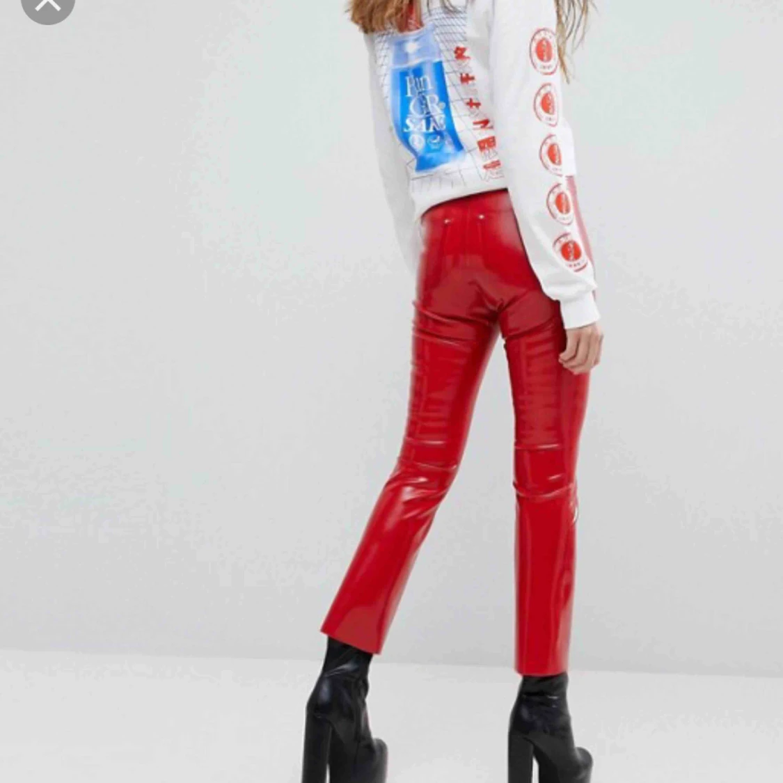 Skitsnygga röda lackbyxor från JFR (samma som de svarta, fast röda). Köpta i vintras för 400kr. Säljs pga fel storlek. Skriv för mer info