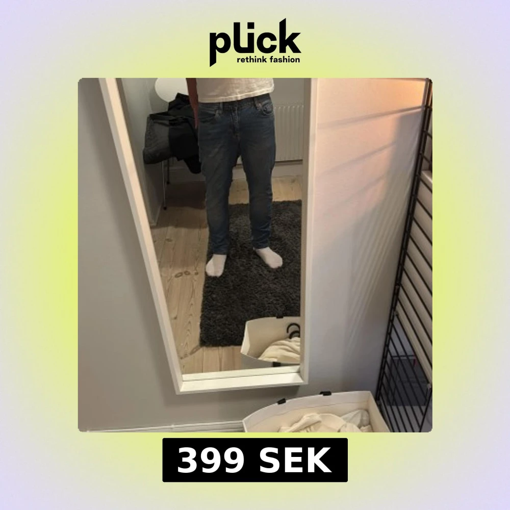 Säljer ett par klassiska blå jeans från J.Lindeberg med normal passform och raka ben. Jeansen har fem fickor, gylf med dragkedja och knapp samt läderpatch med logga bak i midjan. Perfekta till vardags och enkla att matcha.