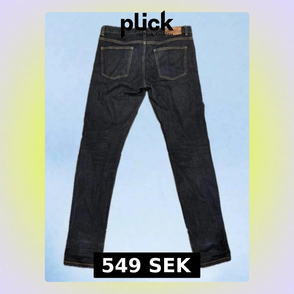 Snygga mörkblå jeans från J.Lindeberg med klassisk femficksdesign och kontrasterande gula sömmar. Jeansen har en läderpatch med logga bak i midjan och är tillverkade i slitstarkt denim. Perfekta för dig som gillar slim passform och stilren look. Storlek: W34 & L34
