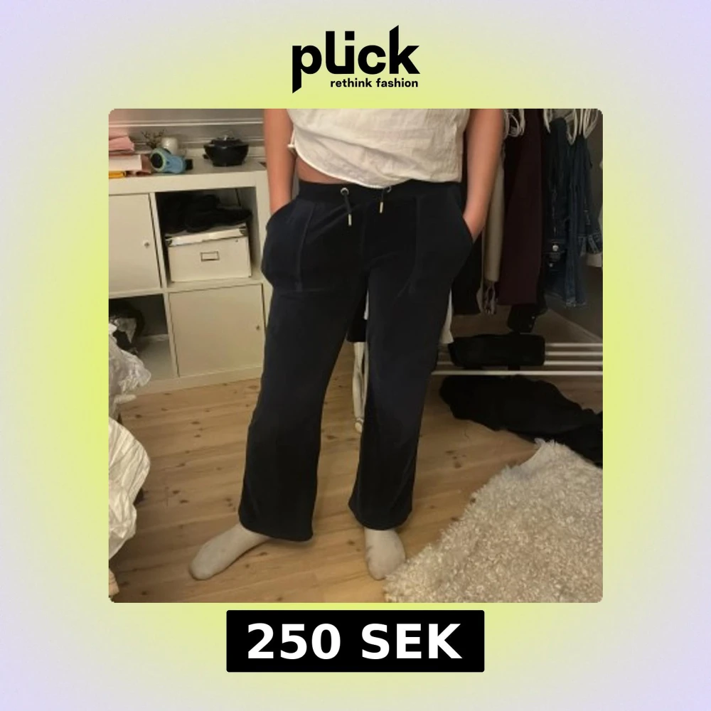 Mörkblå juicy couture äkta. De är använda ca en eller två gånger och inga skador alls. Sköna och perfekta för en avslappnad stil. Pris kan diskuteras.