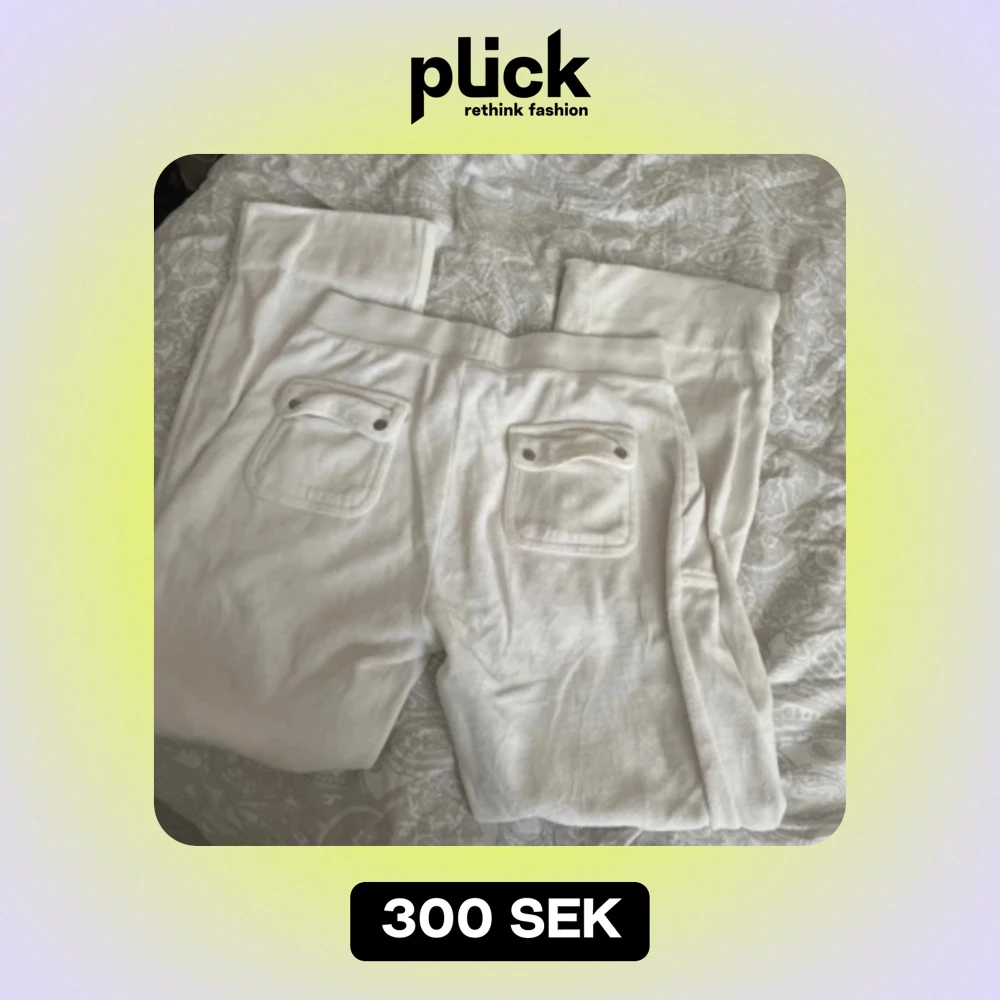 Juice couture byxor i vit, storlek m. I bra men använt skick. Ena metallknappen på baksidan är av (se bild 3). Är uppsydda nertill men går lätt att sprätta upp 🙌🏼😊