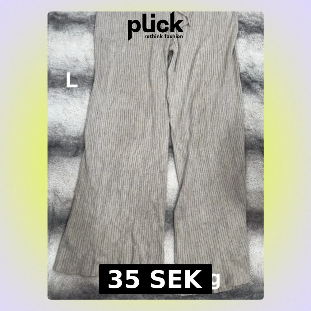 Säljer ett par beige ribbade mjukisbyxor i storlek L. Byxorna har snörning i midjan och har breda ben och relaxed passform. Perfekta för chill dagar hemma. 🌸Diffusa fläckar. Eventuell lite mörkare längst ner. Noppor. Långa så användes när jag var gravid. Storlek L