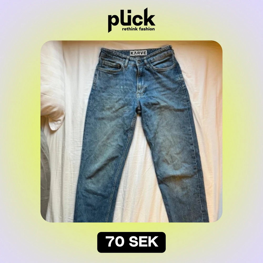 Karve jeans i helt felfritt skick förutom en liten blå fläck på byxbenet! Storlek: w27