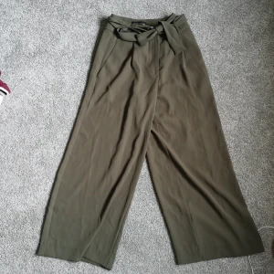 Ett par supersnygga vida finbyxor i storlek 34. Ganska korta i benen i en militärgrön färg. Från Stockh lm.