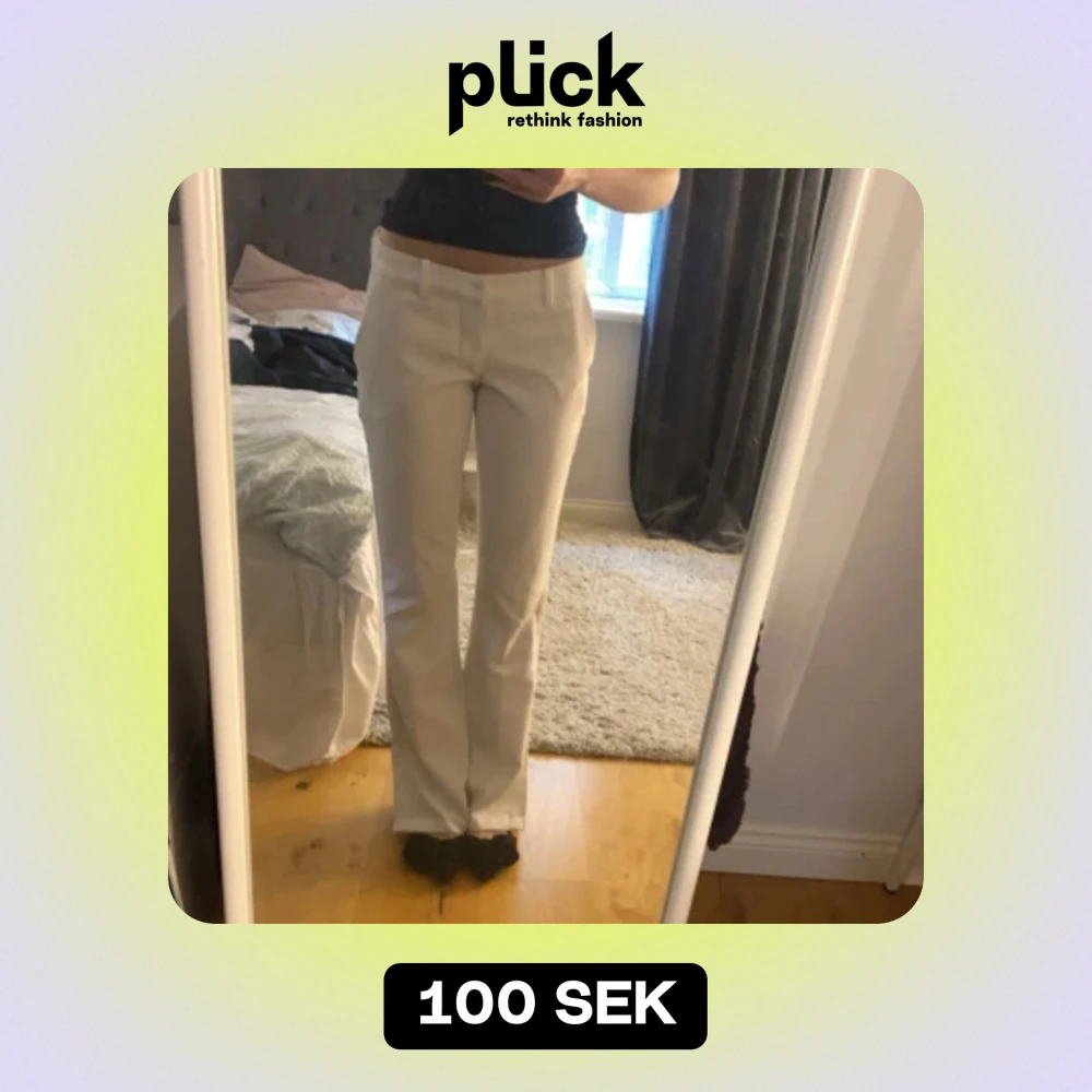 Fina lågmidjade kostymbyxor med slit längst ner vid foten, helt rena🥰 storlek 36 och passar mig som är 170 i längd!