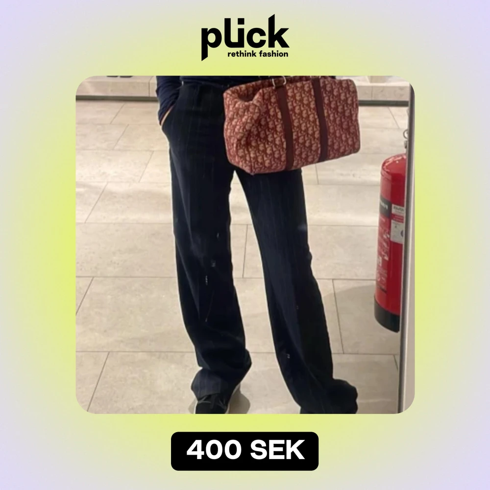 Säljer mina jättefina randiga kostymbyxor i mörkblå färg. Storlek XS från Pull & Bear.